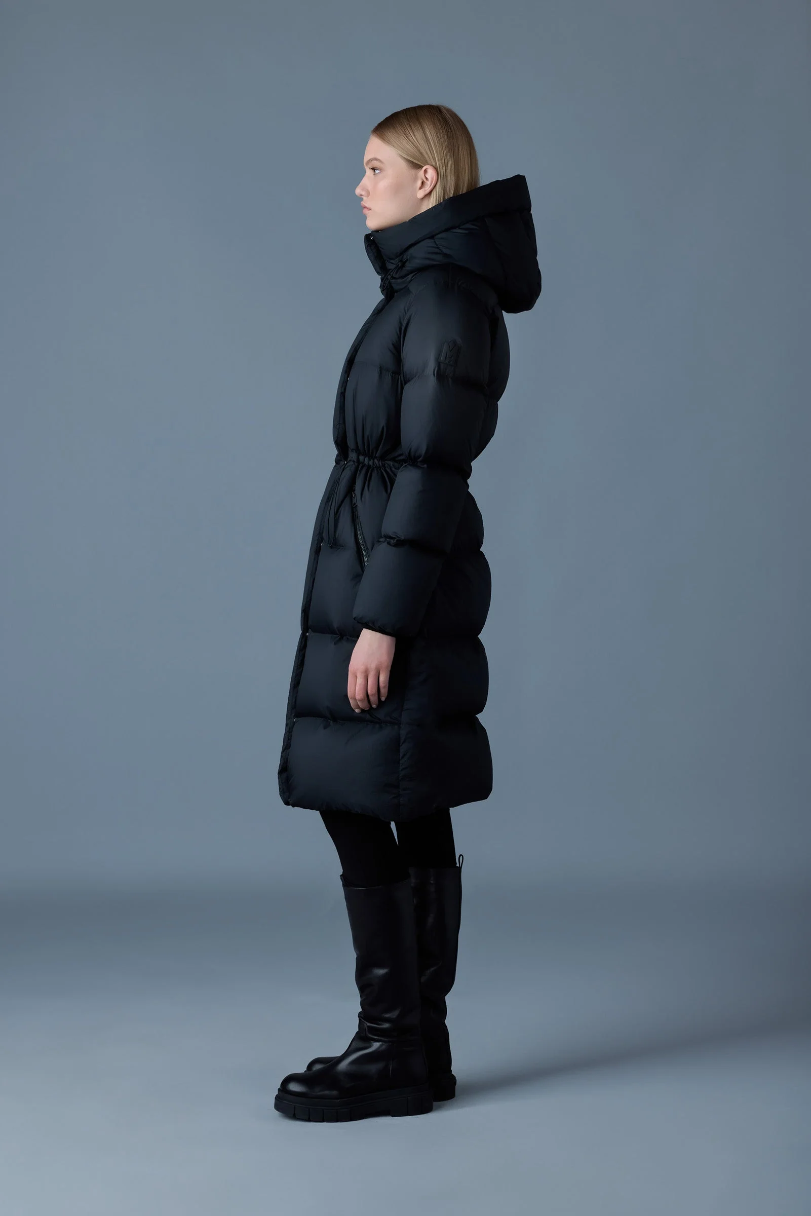 ISHANI-SW is a down coat crafted from a light softwash crinkle material for a matted finish. A drawcord waist accentuates the long, relaxed silhouette. Enhanced by an ample hood with a plush pillow collar with adjustable drawcord storm visor. Water resistant and repellant, lined zip waist pockets and an inside pocket bring added utility. An elevated outerwear icon with adaptive warmth and signature performance.