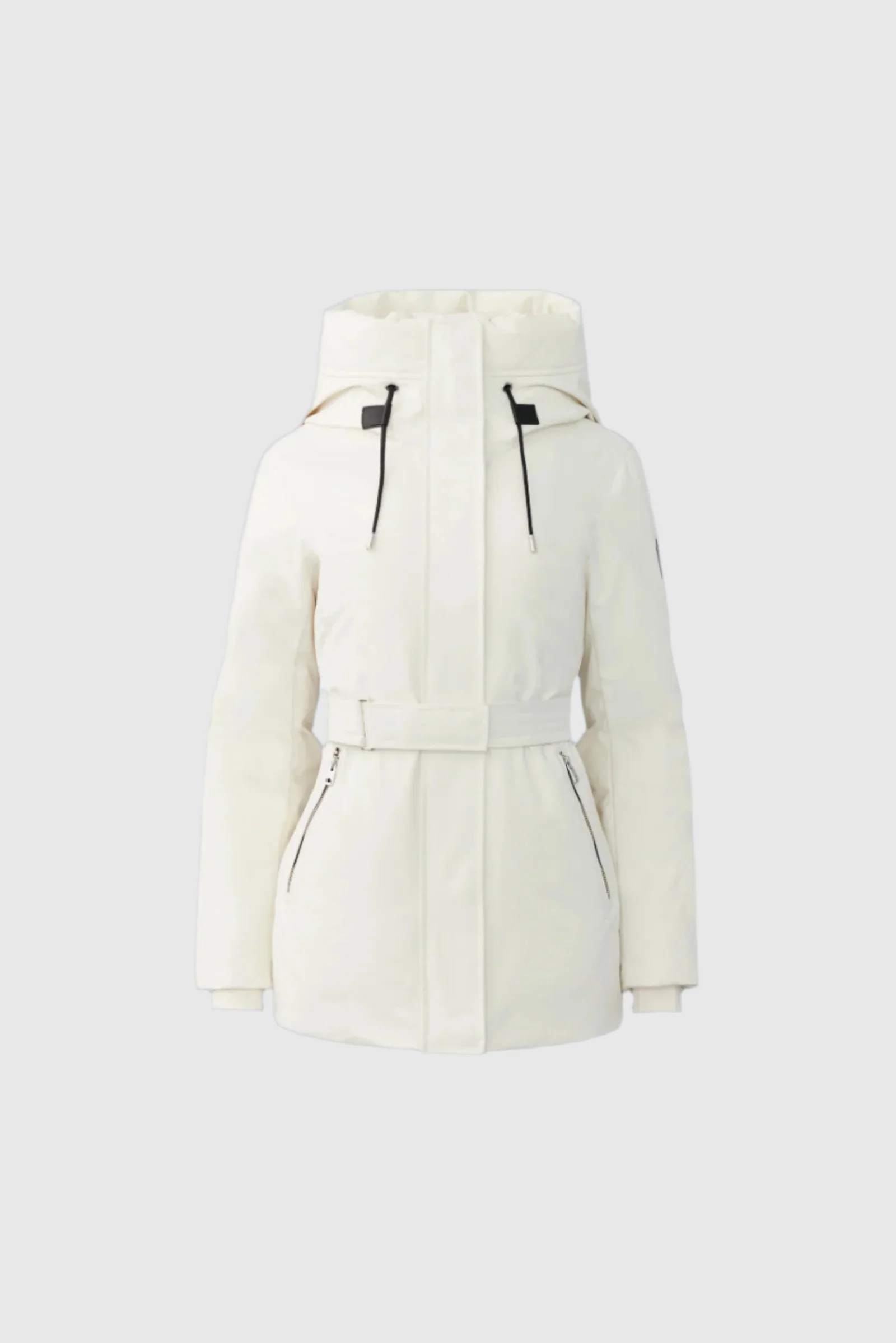 JENI-NF is a 2-in-1 recycled down Nordic Tech parka for women with a removable lustrous down bib and adjustable storm visor hood. The structured, semi-fitted cut is accented with a ruched Velcro clasp belt. Designed for maximum comfort and protection on the coldest days, the proprietary bonded weave, storm placket, and insulated pockets add extra warmth. A high-performance staple with modern versatility.