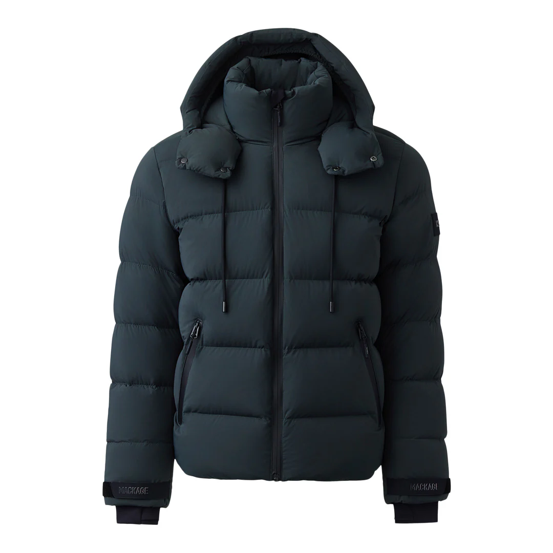 SAMUEL-SKI is a light sustainable CRS-certified down ski jacket for men featuring a removable snap hood fitted with an adjustable drawcord storm visor. Designed for comfort with a stretch shell, the classic cut can be customized for warmth with a drawcord hem and adjustable branded Velcro tab cuffs. Insulated slanted zip waist pockets offer further adaptability. An updated essential with leading performance, perfect for any ski day.
