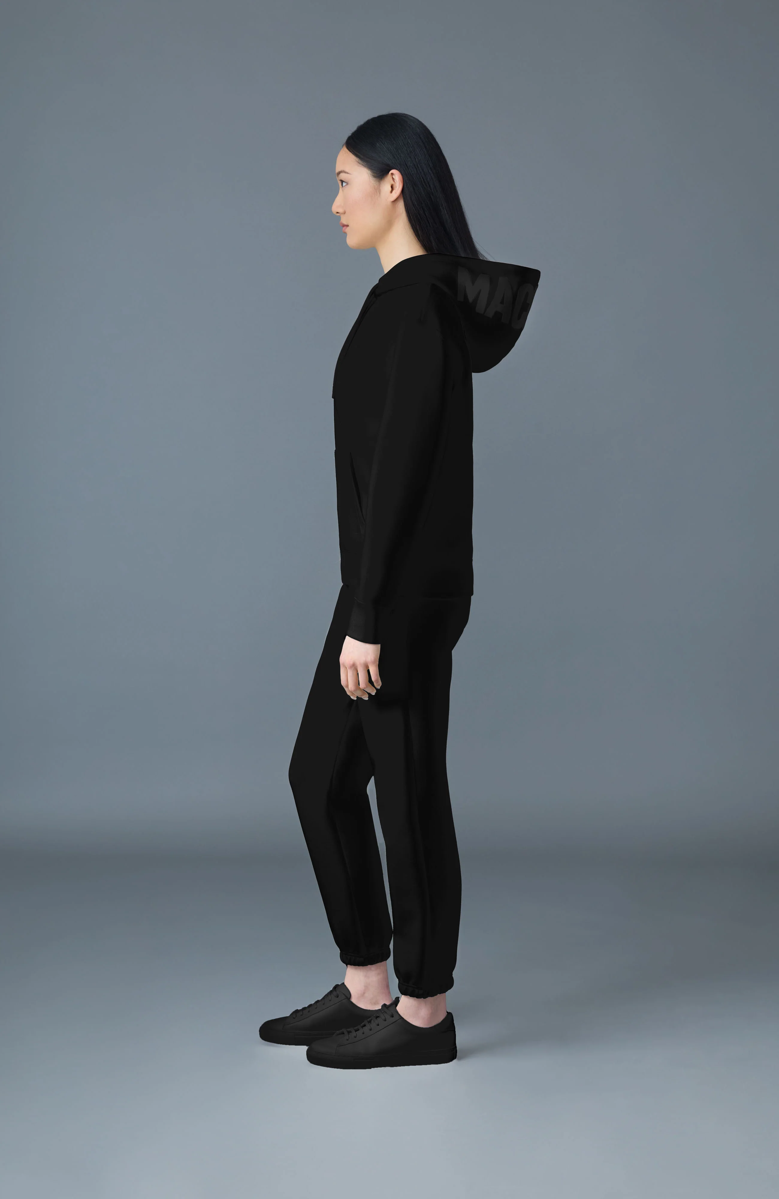 ZOSIA is a classic hoodie crafted to a relaxed fit from ultra-soft double-face jersey. Featuring a kangaroo pocket, rib knit trims, and an adjustable drawcord hood, it delivers all-day ease and versatile wear. The silicone "MACKAGE" logo on the right chest adds subtle edge. A luxe loungewear staple with indoor-outdoor appeal.